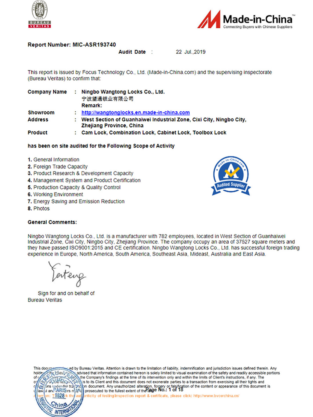 2015年:以我司为组长单位起草的《中国家具锁行业标准》,经过两年的努力,于2015年通过国家验收,并且于当年10月1日起正式实施。同年,被宁波市四部门授予“宁波市企业技术工程中心”。